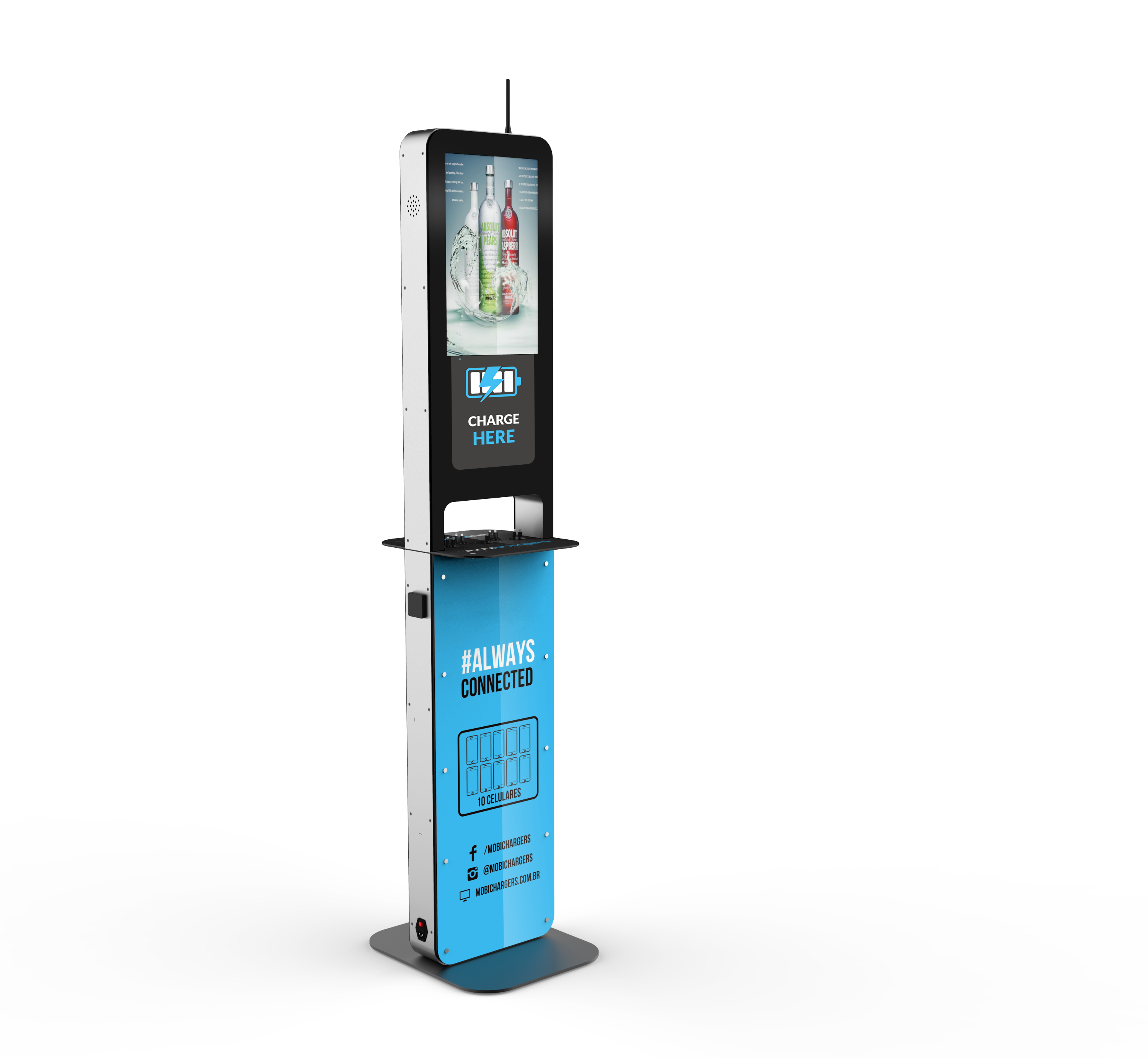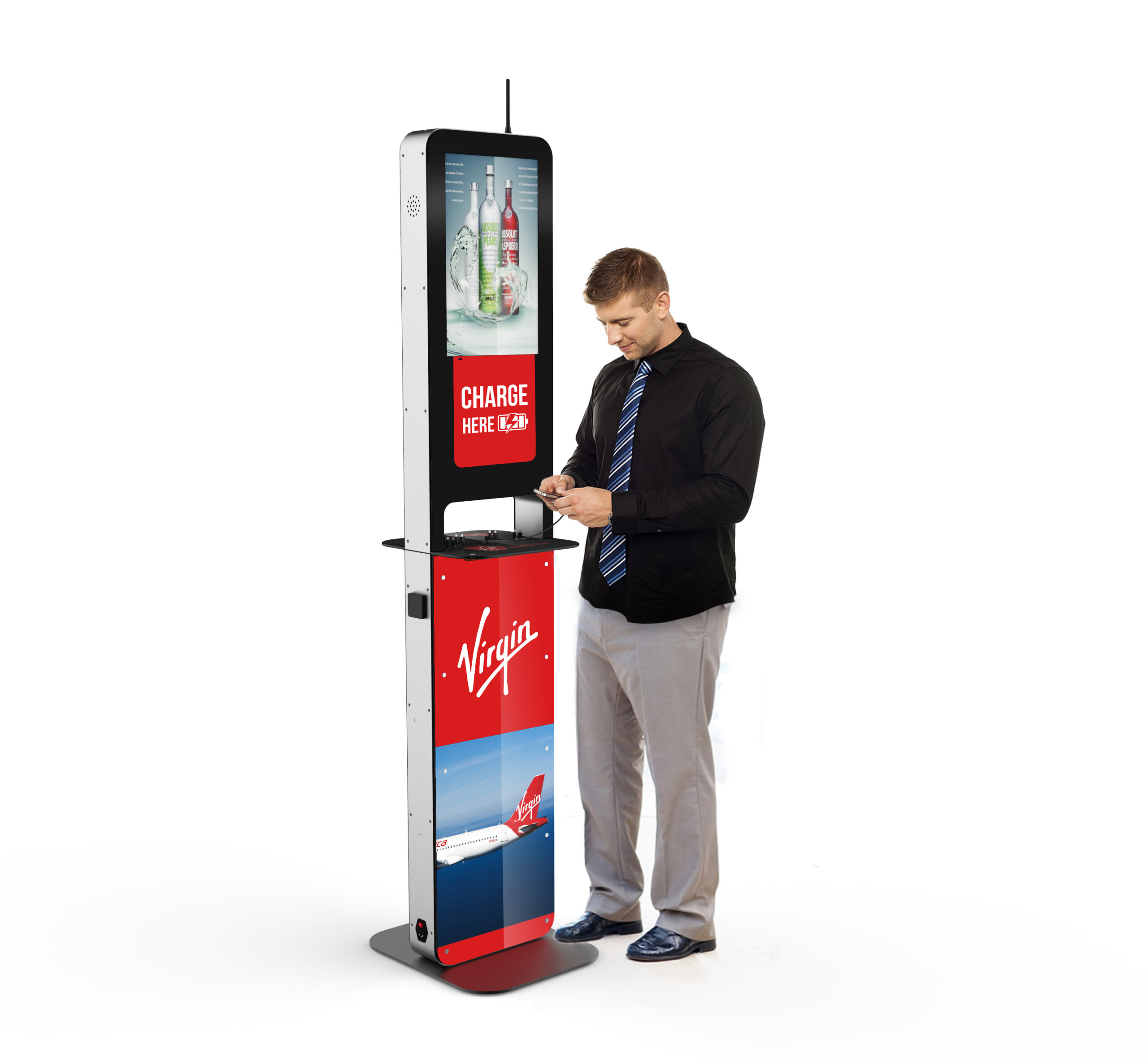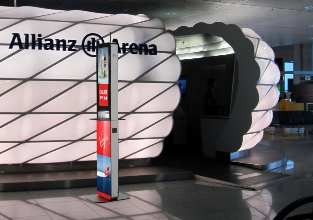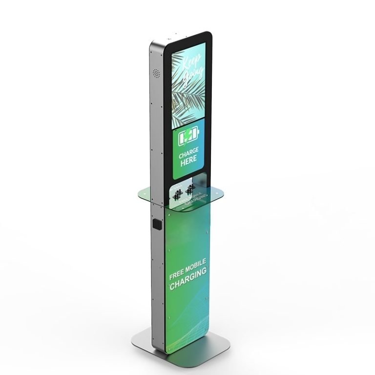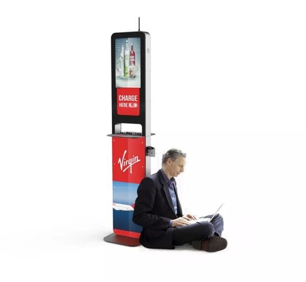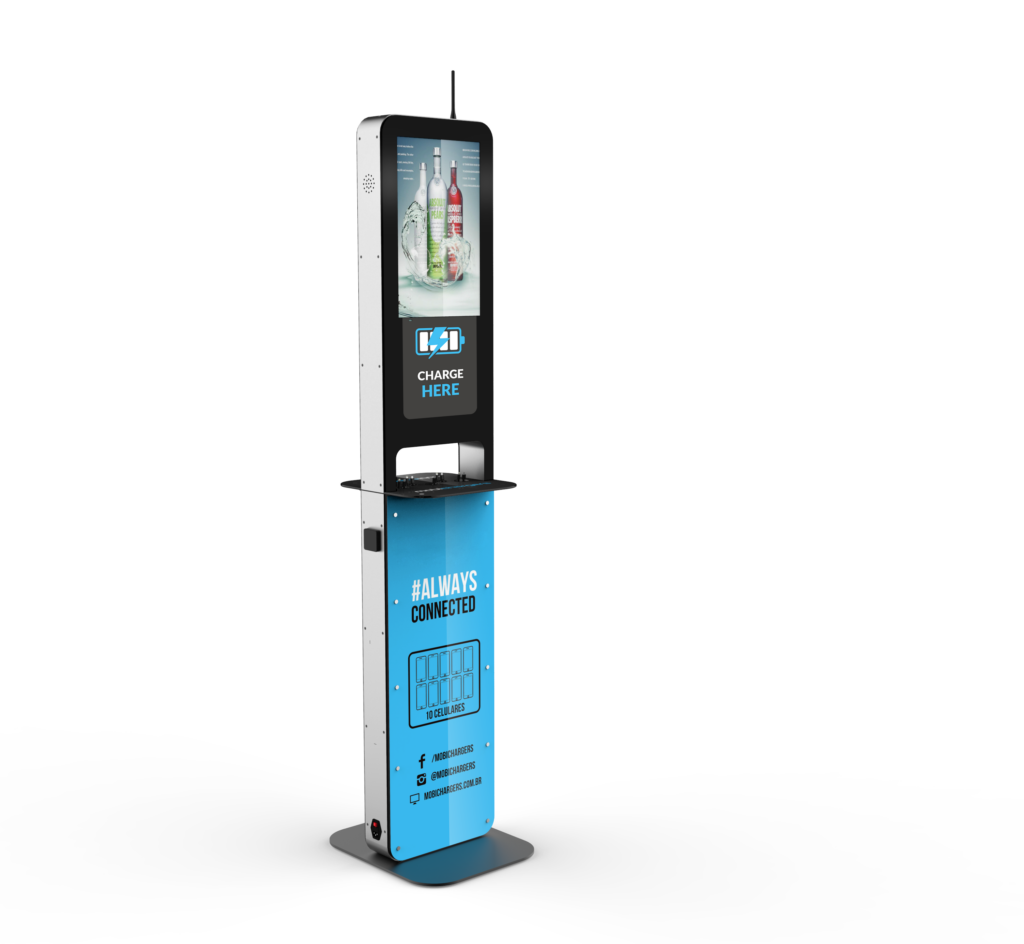 Το μοντέλο Aida είναι ένας πολυφορτιστής συσκευών και παράλληλα ισχυρό εργαλείο marketing. Διαθέτει 10 καλώδια φόρτισης συμβατά με όλους τους τύπους κινητών και tablets και 2 πρίζες για φόρτιση laptops. Συμπληρωματικά μπορεί να διαθέτει και 2 θέσεις ασύρματης φόρτισης Wireless Qi καθώς και 2 θύρες φόρτισης USB. Αποτελείται από 2 οθόνες LCD 21,5’’ ώστε να προβάλει το διαφημιστικό σας μήνυμα και στις δύο όψεις.