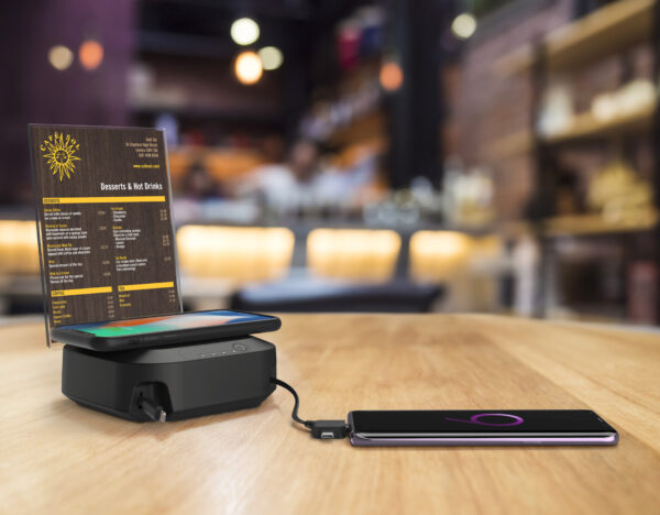 Η ιδανική λύση για να κρατάτε τις συσκευές σας φορτισμένες, όπου κι αν βρίσκεστε. Ο συγκεκριμένος universal σταθμός ασύρματης φόρτισης έχει σχεδιαστεί ειδικά για εστιατόρια, μπαρ και ξενοδοχειακά δωμάτια, προσφέροντας εύκολη και άμεση φόρτιση σε όλους τους χρήστες. Με κομψό μαύρο φινίρισμα και γρήγορη φόρτιση, εξασφαλίζει ότι οι συσκευές σας είναι πάντα έτοιμες για χρήση.